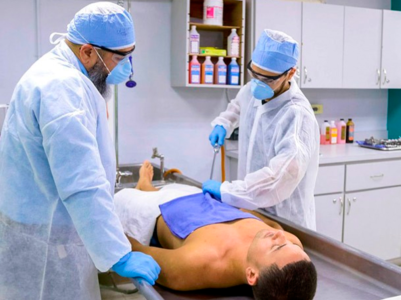 Los exámenes son realizados por médicos especialistas en patología en los consultorios de nuestro laboratorio, y el proceso tiene una duración de entre 3 y 5 horas. Para este procedimiento se emplean sustancias fijadoras y preservantes, como formol, ácido fénico y glicerina, en cantidades y proporciones adecuadas, con el objetivo de retardar la aparición de los fenómenos propios de la putrefacción cadavérica.